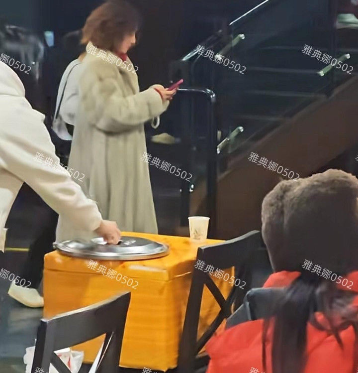 马伊琍穿着大红色的羊绒衫,和大红色的毛领呢子大衣,染着黄色的泡面头,腰上扎着腰带扣超大特别夸张的皮带,她站在酒席场地的中间,旁边站的分别是新郎新娘,她对着镜头浅浅微笑,但气场却非常强大。